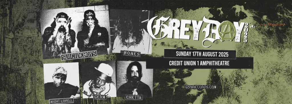 Trouble is brewing this season and it’s none other than the debauchery hip-hop phenoms from Louisiana! $uicideboy$ are back with a banging new outing and they’re slated to rip major cities to shreds with their monumental sets! The annual signature outing Grey Day Tour comes back with a slew of new territories to conquer and it includes a highly coveted stop over in Tinley, Park Illinois! See the hard hitting duo hit up the Credit Union 1 Amphitheatre! The show on Sunday 17th August 2025 is sure to bring their latest studio work, the New World Depression, centerstage! Prepare for the ultimate annihilation as the duo performs a plethora of their angsty hits and some crowd pleasers! Along with special guests Bones, Joeyy, Night Lovell, and Germs, the $uicideboy$ are sure to set the night ablaze! So hurry and secure your exclusive access now by clicking on the Get Tickets link!